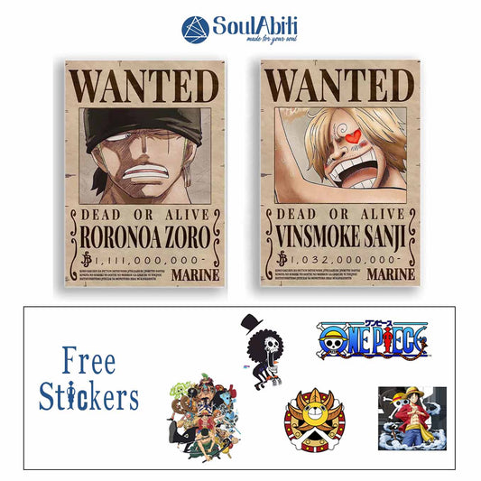 One piece Set of 20 wanted posters Luffy gear 5, Free Stickers (A4 size, 370 GSM) Post wano arc posters, double sided tape