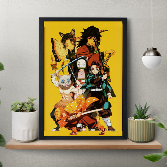 Demon Slayer trio with nezuko giyu and shinobu Poster anime frame (13x19-Inch, Plexi-Glass, Textured Frame)