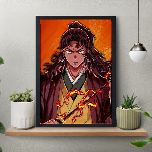 Demon Slayer Yoriichi Tsugikuni Portrait Poster Art Framed 13x19 Inches, Plexi Glass, Textured Frame)